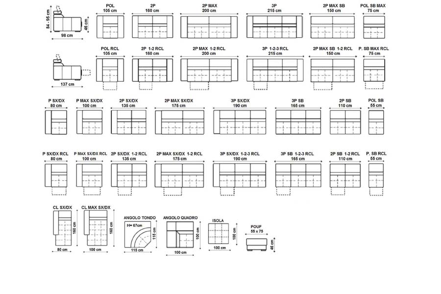 en polyuréthane expansé, avec densité 21 kg/m3, recouvertes d'une couche de Dacron auto-extinguible