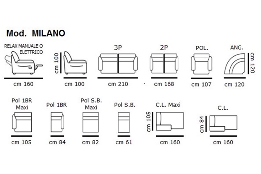 Dans la version relax, le modèle est équipé d'un mécanisme combiné avec mouvement du dossier et du repose-pieds, disponible dans la version électrique o manuel, avec commande positionnée sur le côté extérieur du canapé. Les assises centrales ayant mécanique relax sont aussi équipées de commande située sur la partie latérale de l’assise.Tous les éléments, à la fois fixes et avec mécanisme de relaxation sont modulaires et assemblables par des crochets à baïonnette.