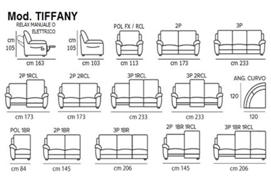 Dans la version relax, le modèle est équipé d'un mécanisme combiné avec mouvement du dossier et du repose-pieds, disponible dans la version électrique o manuel, avec commande positionnée sur le côté extérieur du canapé