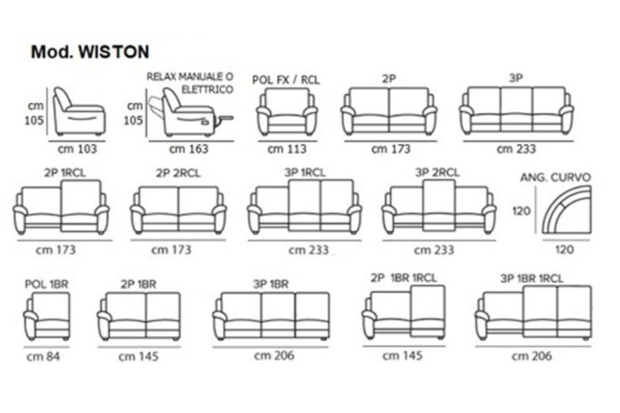 Dans la version relax, le modèle est équipé d'un mécanisme combiné avec mouvement du dossier et du repose-pieds, disponible uniquement dans la version électrique avec commande positionnée sur le côté extérieur du canapé. Les assises centrales ayant mécanique relax sont aussi équipées de commande située sur la partie latérale de l’assise. Tous les éléments, à la fois fixes et avec mécanisme de relaxation sont modulaires et assemblables par des crochets à baïonnette